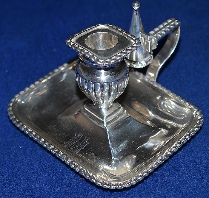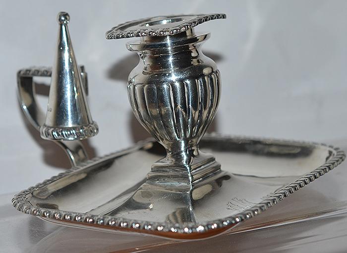 SILVER EDWARDIAN CHAMBERSTICK AND SNUFFER.