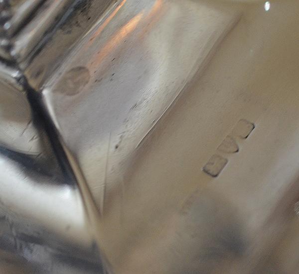 silver dish with small candle stick with carrying handle and complete with detachable silver snuffer. Silver marks for Chester 1902, the makers initials are hard to read now. Engraved with original owners initials and date 25th of June 1902. Near mint.